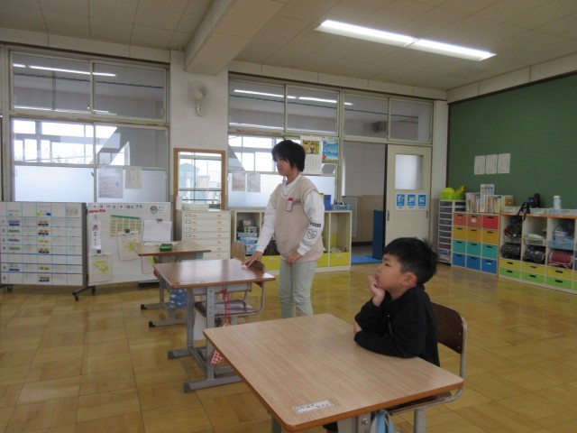 いつも日常生活「ひまわりタイム」に、日直さんが1分間スピーチをしますが、「春休みのことをたくさん話したいので、5分間スピーチがしたいです。」とのことで、タイマーをセットして5分間スピーチ開始!