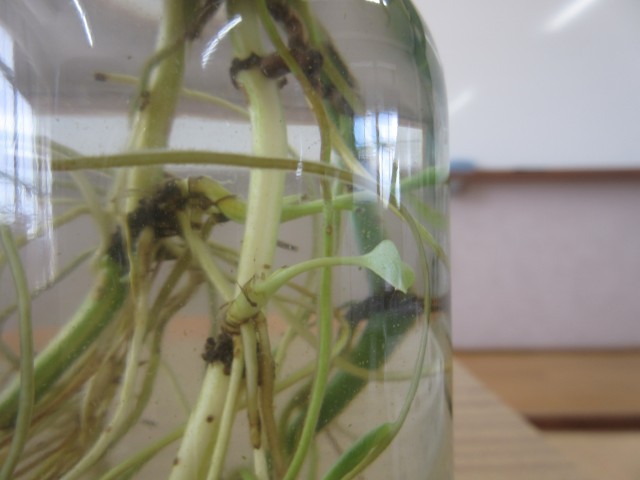 卒業した6年生たち(新中学1年生たち)が、昨年度の3学期に「これ、もう新しい葉っぱは無理じゃないかな。もし葉っぱが出たら、教えてね。」と言っていたので、ホームページに掲載します!