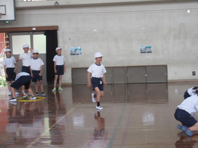 5年生が、チーム対抗のボールを3つ集めたら勝ちというゲームをしました。
