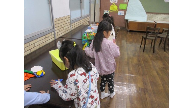 朝、学校に来てしなければならないことを済ませると、となりの部屋で自分の好きな遊びをして楽しんでいます。