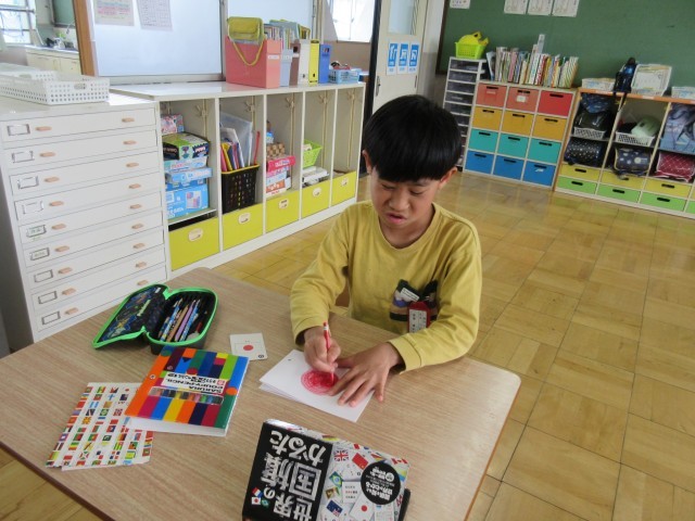 けん玉、国旗調べ、お絵かき。