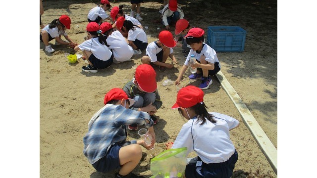 今日の図画工作科の時間では、砂場に行って砂に触れて作りたいものを考えながら、友達と一緒に楽しく活動を進めていました。
