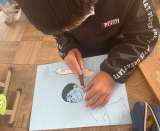 版画の学習が始まりました。面彫りで丁寧に人物を彫り進めています。