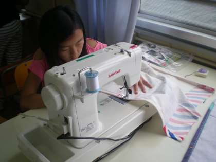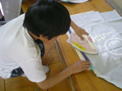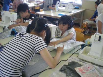 家庭科では,引き続き「エプロン作り」に取り組んでいます。 ミシンを使って,丁寧に仕上げています。