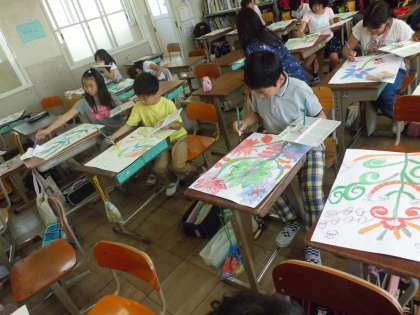 図工 まぼろしの花 公開日 2017/06/08 更新日 2017/06/08 4年生の部屋 図工では,絵の具の使い方の練習を兼ねて,「まぼろしの花」の作成をしています。紙粘土で種から作り,そこからどんな花が咲くのか,想像を広げて描いていきます。誰一人として,同じ花はなく,みんなの個性があふれた作品になっています。子どもたちの力作を是非,日曜参観にご覧ください。