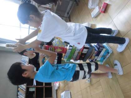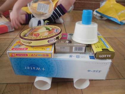 算数の学習 公開日 2017/06/13 更新日 2017/06/13 1年生の部屋 算数の学習では,「いろいろなかたち」の学習をしました。 お家で集めてもらった箱や缶を組み合わせて,班の友達と一緒に作成しました。