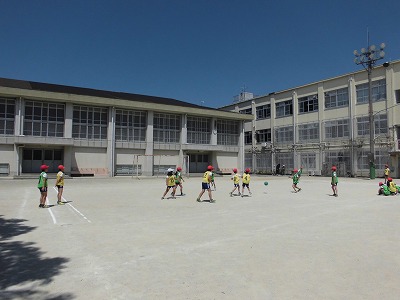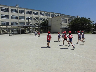 エンドボール 公開日 2017/06/15 更新日 2017/06/15 3年生の部屋 体育はエンドボールの学習が始まっています。だれがガードマンになるのがいいか,得点を多く入れるにはどんな工夫ができるか,子どもたちはいろいろ考えて,やる気いっぱい!ですが,準備に時間がかかり,どうしてもゲームの時間が短くなってしまいます。この課題を乗り越えて,素早く行動できるように頑張りましょう!