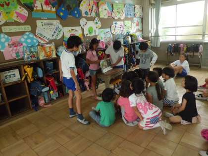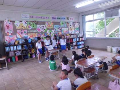 あじさい読書週間の取り組みで,初めて4年生が2年生に読み聞かせをするという活動をしました。緊張がこちらにまで伝わるほど,ドキドキしている様子でしたが,みんな本当に良く頑張っていました。読み終わると,2年生から大きな拍手をもらい,とても嬉しそうにしていました。