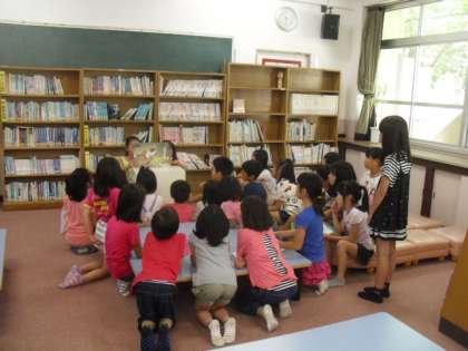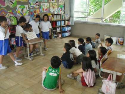 2年生が真剣に話を聞いていたので,4年生も,一生懸命読んでくれました。