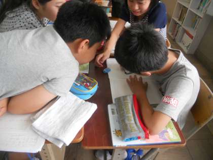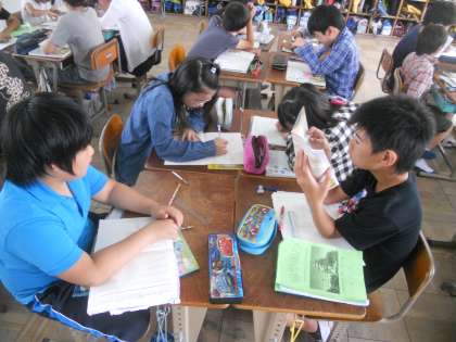 国語の学習でパンフレット作りに取り組んでいます。