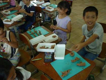 久しぶりのねんどを使っての授業なので,みんな張り切って色々なアイデアをだしながら制作してくれました。