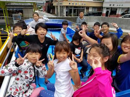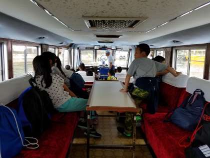 バスは賢島港に到着し,これからいよいよみさきの家のなかよし港に向かって船が出発します。屋上デッキの風がとても気持ちいいです。