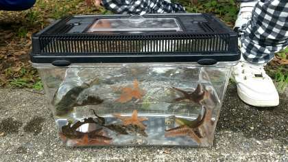 予定にはなかった特別プログラム「かご漁」がスタートです。