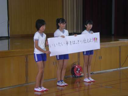 今月の朝会は,校長先生から「とべないホタル」という絵本の読み聞かせをしていただきました。