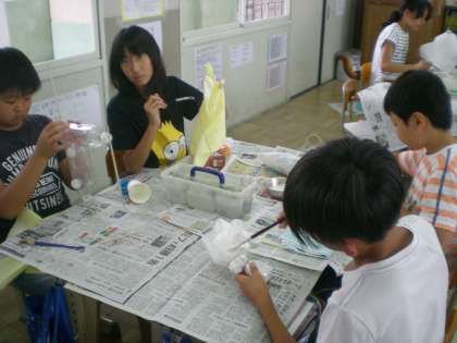 家から持ってきた空箱やペットボトルをうまく使い,仕上げていました。