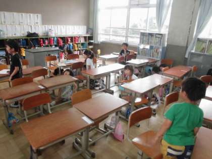 それぞれの場所で一次避難をしました。事前に学習をした「姿勢を低く」「頭・体を守