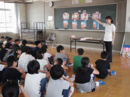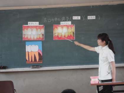 2時間目に講師の先生に来ていただき「はみがき指導」をしていただきました。