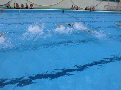伏し浮き→バタ足→面かぶりクロールと練習し,コース別に長く泳ぐ練習をしました。