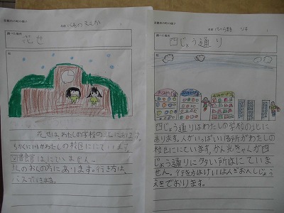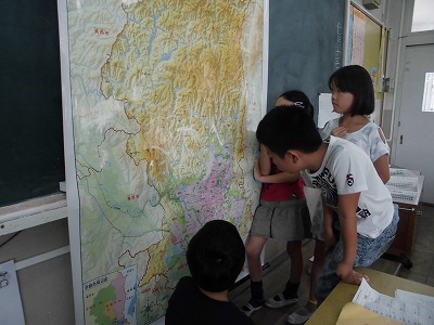 子どもたちは地図を見て方角を調べたり,教科書を見てその場所の特徴を確かめたりして,頑張ってカードにまとめていました。
