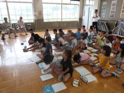 今日の総合の時間には,伏見楽舎さんをゲストティーチャーにお迎えして,いろいろなことを教えて頂きました。つばめのことやつばめのねぐらになる植物,ヨシについてなど,学校での自分たちの調べ学習でも分からなかった,いろいろなことを分かりやすい映像を交えて教えて頂きました。8月5日には,「つばめのねぐら」観察会を予定しています。学校からのプリントでもお知らせしています。できるだけたくさんの人に参加してほしいなあと思っています。伏見楽舎の皆さん,子どもたちのためにいろいろ準備をしてくださって,本当にありがとうございました。
