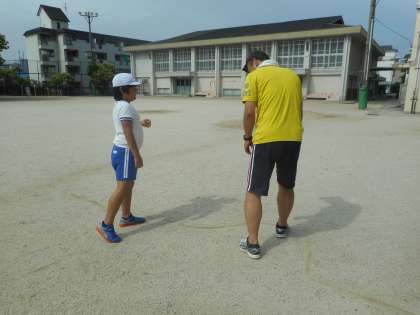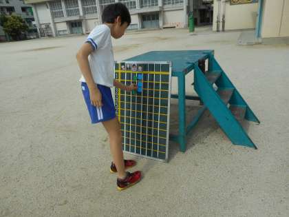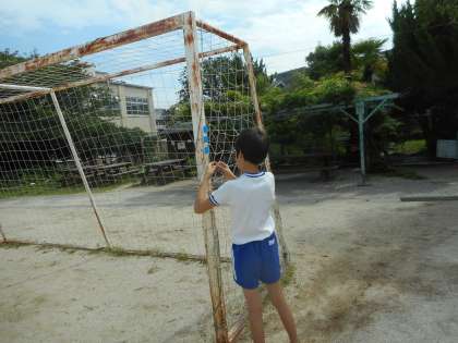くすのき学級では,4月から朝,1時間目,運動場を走ったり歩いたりする時間を作っています。子どもたちそれぞれの目標をもっての取り組みなので,「ちょっとマラソン」と名付けています。子どもたちそれぞれの顔カードを付けたボードを運動場に持って行って,1周,走ったり歩いたりする毎に自分の色のカードを貼り付けて見通しを持ちながら取り組んでいます。今はとても暑い季節なので,朝の涼しいうちに走っています。続けて取り組んでいくうちに,自分の力を少しずつ伸ばしていく楽しさを体感してほしいと思っていてます。