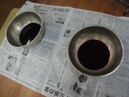 和紙に色染めをしました。森先生が,2週間前から咲いたあさがおを毎日