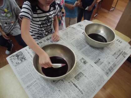 きれいに染まった和紙を見て,子どもたちもとても喜んでいました。