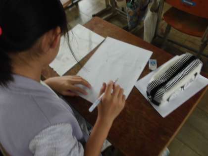 パソコンを使ってイメージをふくらませながら下絵を完成させています。