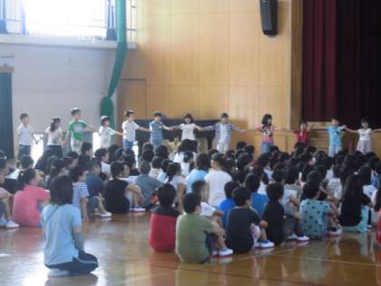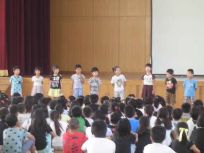 全校児童の前で初めての発表でしたので,とても緊張した様子でした。