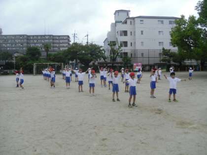 団体演技の練習が進み,外での練習が始まりました。