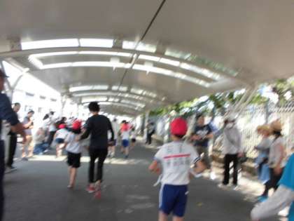 午前中の活動のラストはマラソンで,みどりの広場の周辺コースを走りました。止まらず休まず頑張って走りぬきました。