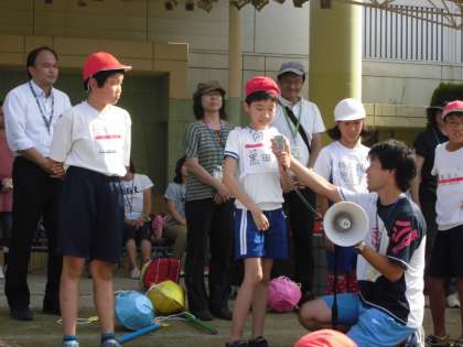 その後,育成学級の子どもたちが司会をする閉会式をしました。各小学校の6年生が前に出て,自分の学校名と名前を言って挨拶をしました。
