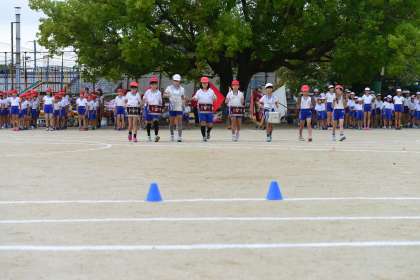 開会式に向けて,鼓笛部の演技に続いて入場行進を行いました。
