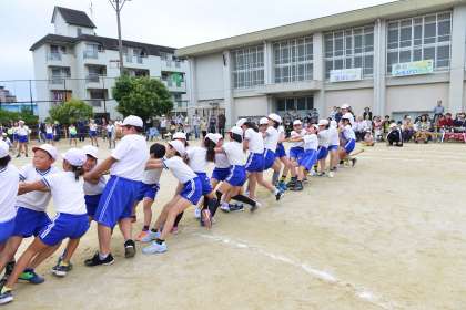 1年〜6年で力を合わせて,力いっぱい綱を引きました。
