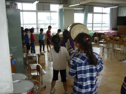 実際にリズムをとりながら太鼓を叩くのはなかなか難しかったです。