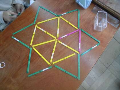 今日は,「かたちづくり」の練習問題をしたり,棒を使って「星」をつくったりしました。