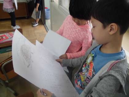 国語科では,「しらせたいな みせたいな」の学習を行っています。