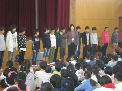 11月の朝会では,校長先生から支部駅伝に向けたインタビューを子どもたちにしていただきました。