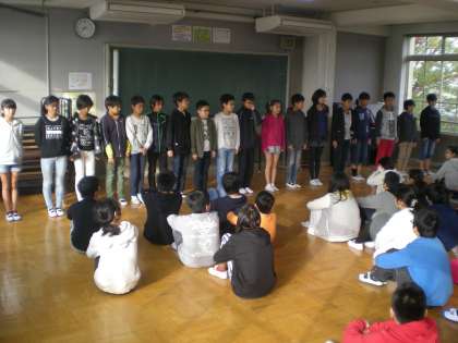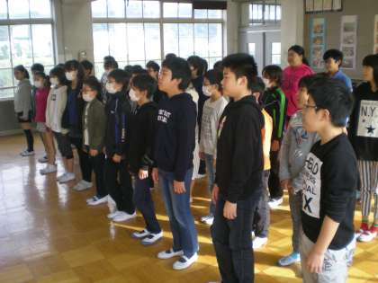 朝の時間に学年で集まり,みんなで思いを一つにしました。