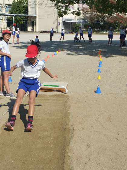 助走の速さや力強くふみきることなど各自がめあてをもって学習にのぞんでいます。