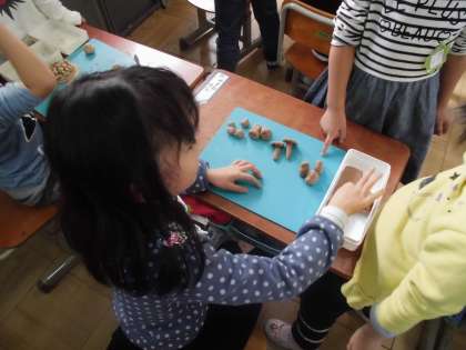 図画工作の学習では,お弁当箱に入っている食べ物を粘土で楽しくつくりました。