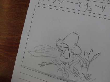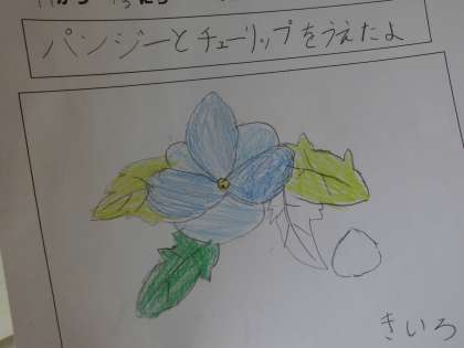 パンジーの色や形をよく見て気付いたことをカードにかきました。