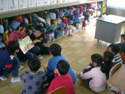 今日は,1年生に対して6年生が読み聞かせをしました。