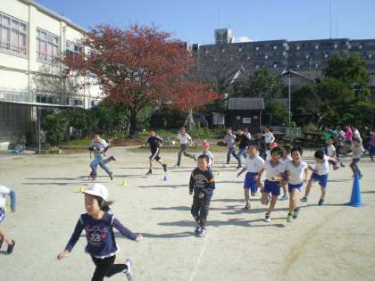 今日から持久走記録会に向けた中間休みの5分間走が始まりました。