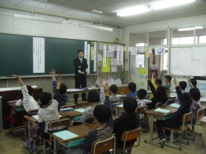 2年2組では,国語の学習の様子をたくさんの先生方が見に来られました。