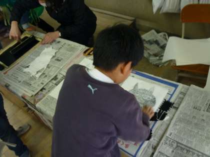 図工科で,自分が思い描いた「オニ」の姿を版画しました。