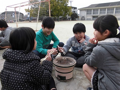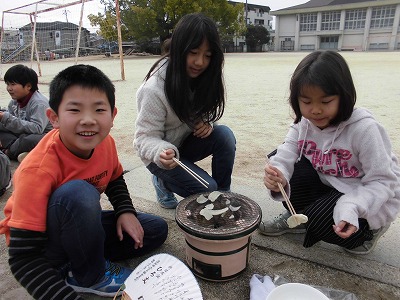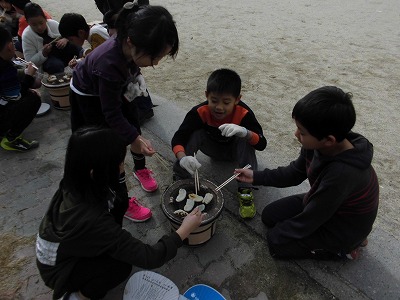 外で焼いて食べるかきもちはとってもおいしかったね♪