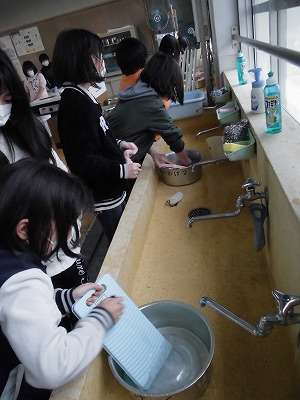冷たい水で,手を真っ赤にしながら,持ってきた靴下やハンカチを洗いました。