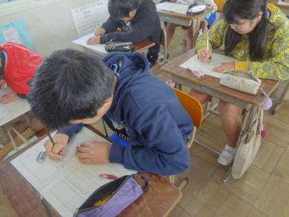 最後には,中学校に向けての質問をプリントに書きました。