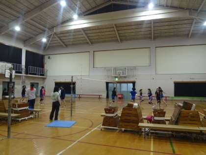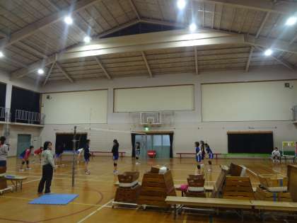 明親小が向島小学校体育館を会場に交流戦を行います。